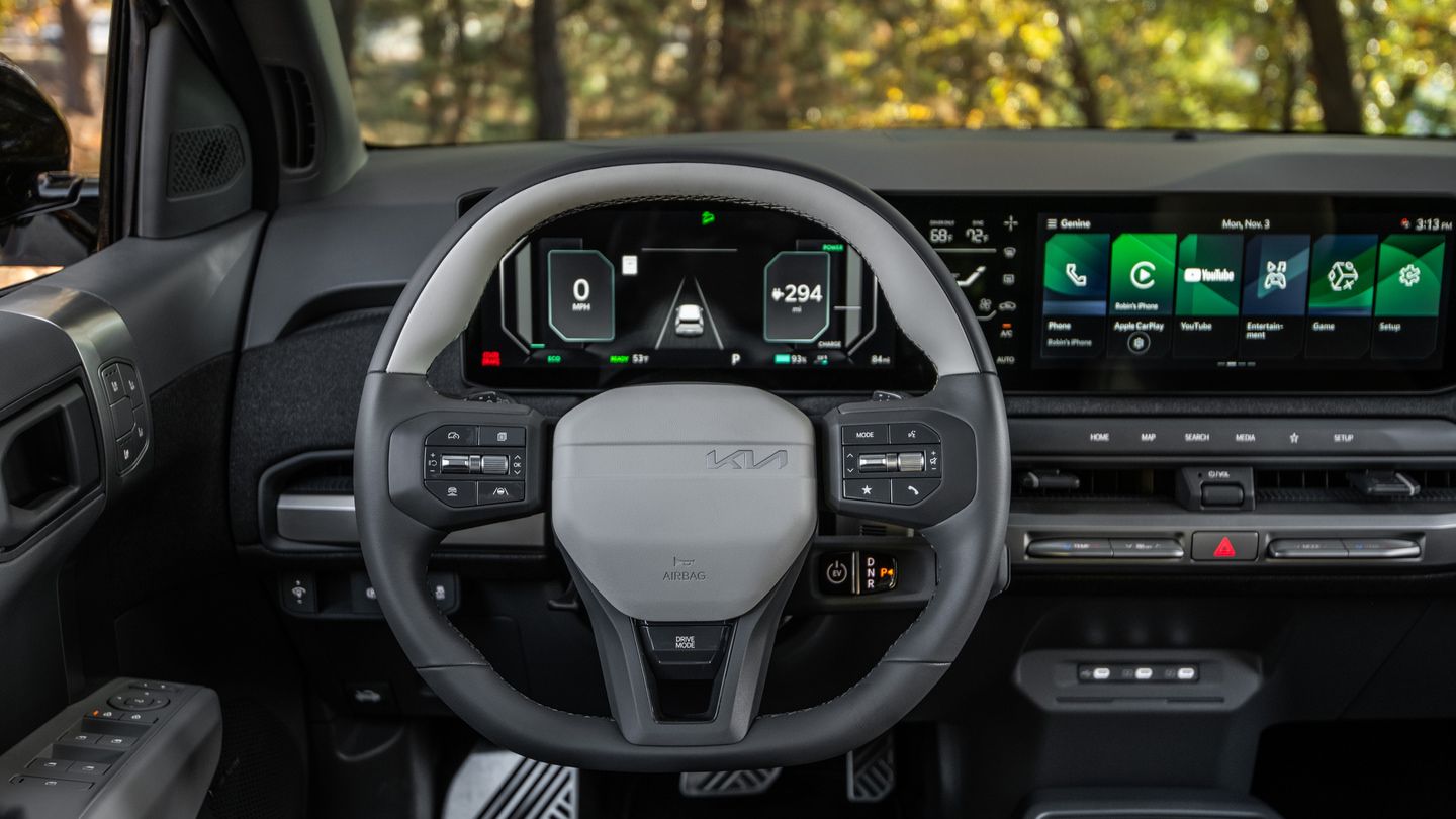 Le Kia EV3 2027 est livré de série avec huit coussins gonflables, incluant des coussins latéraux arrière. La suite de systèmes avancés d'aide à la conduite (ADAS) comprend l'évitement de collision frontale avec freinage d'urgence automatique et la détection de mains sur le volant qui vous alerte si vos mains quittent le volant.