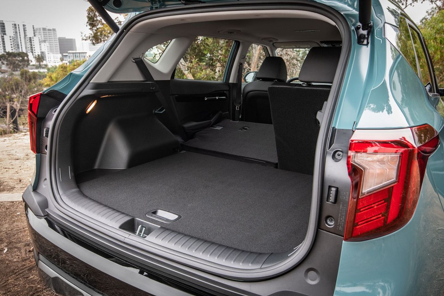 Le Seltos 2026 offre 752 litres d'espace de chargement derrière les sièges arrière (avec le plancher de chargement abaissé). C'est suffisant pour une épicerie complète, plus des sacs de hockey ou une poussette et un sac à couches.